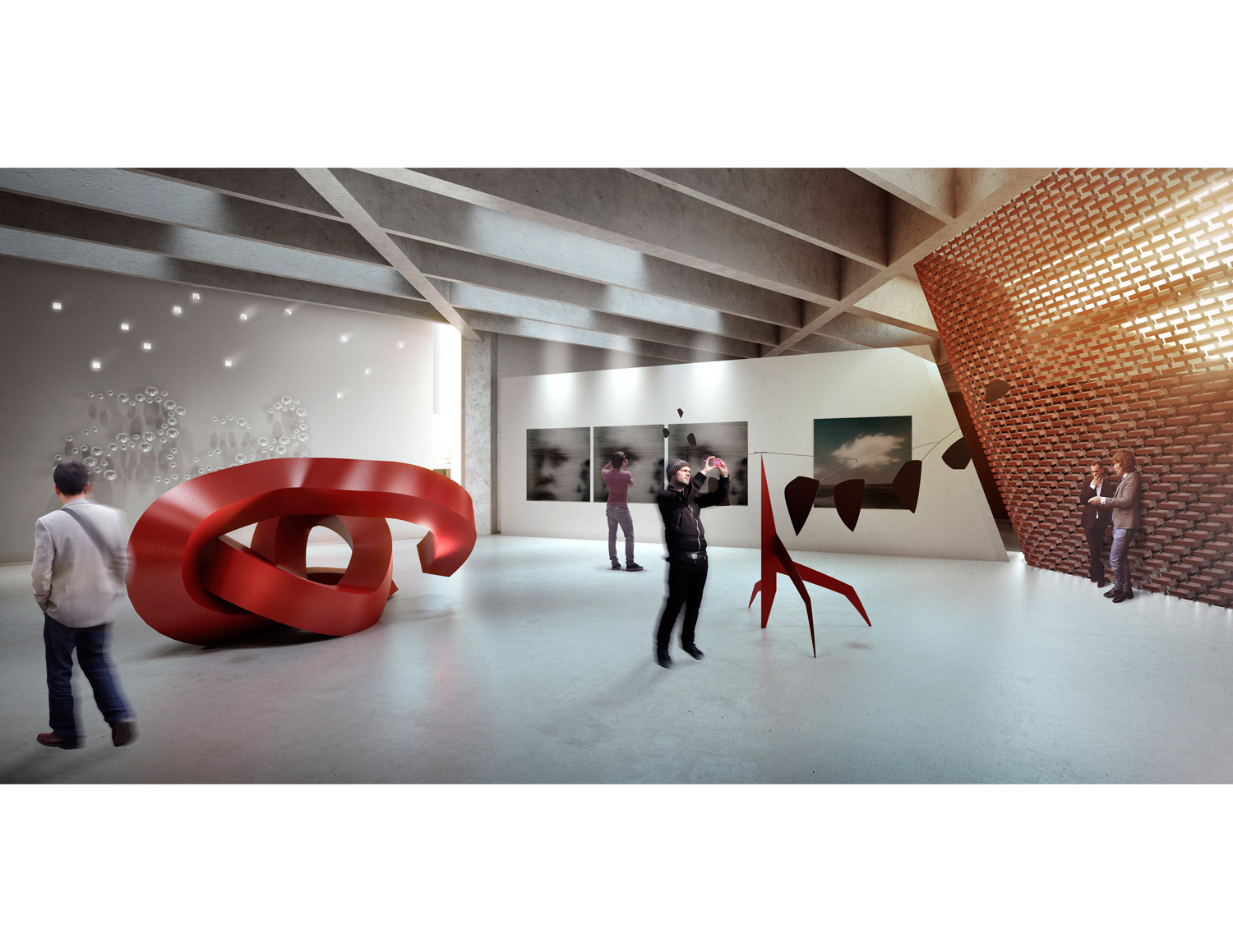 2. A ramp as a kind of public device that goes around and crosses the area with galleries and classrooms.